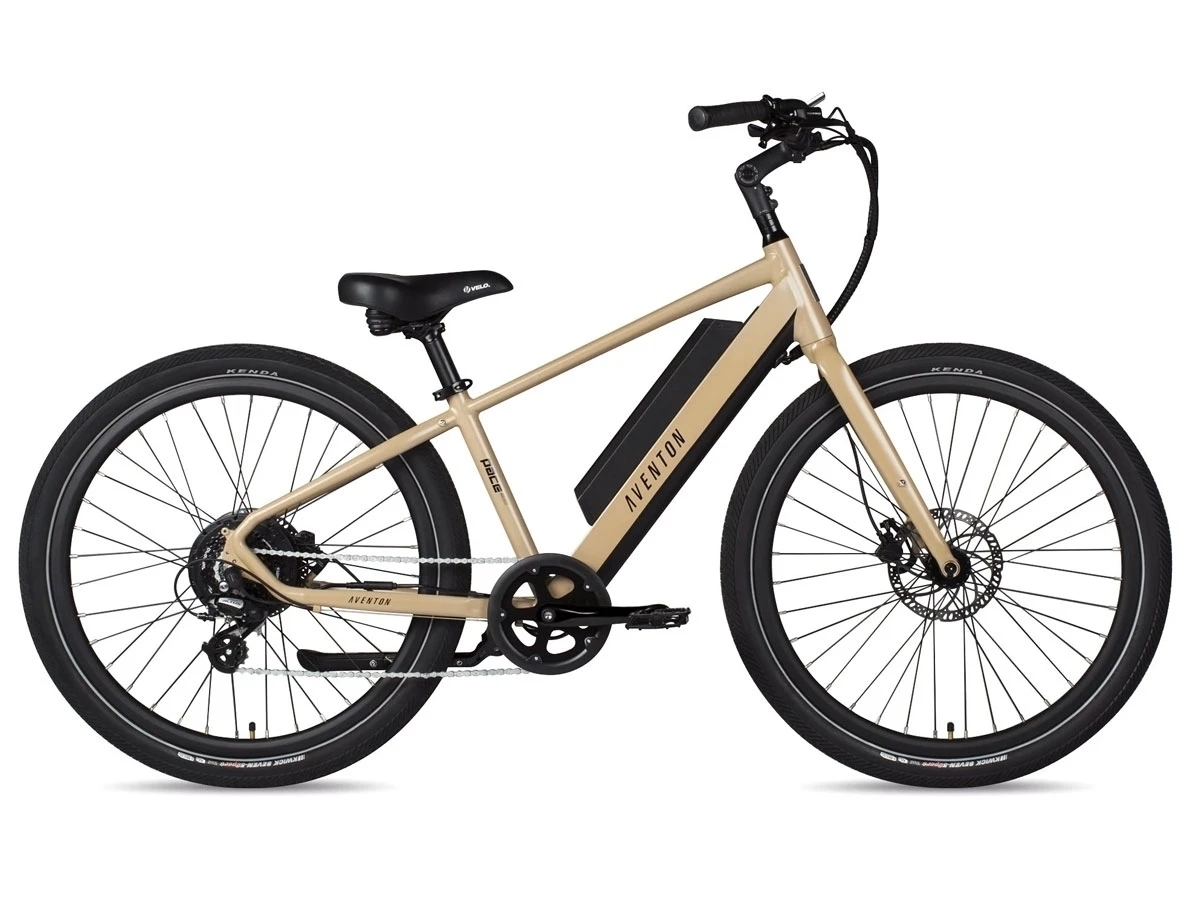 The Aventon Pace 250 is the latest ebike from Aventon! It has been built around a Cruiser geometry, using an Alu frameset and 650B wheels, so they’re super comfortable with the smaller wheel/bigger tyre combination making them perfect for potholed city roads and gravel paths alike. The 250Watt brushless motor has 5 levels of pedal assist powering you up to 15mph – which tied into the 7 speed Shimano gearing – will mean that riders can fly up the steepest of hills. Cable pull disc brakes will mean they can come down safely and securely!