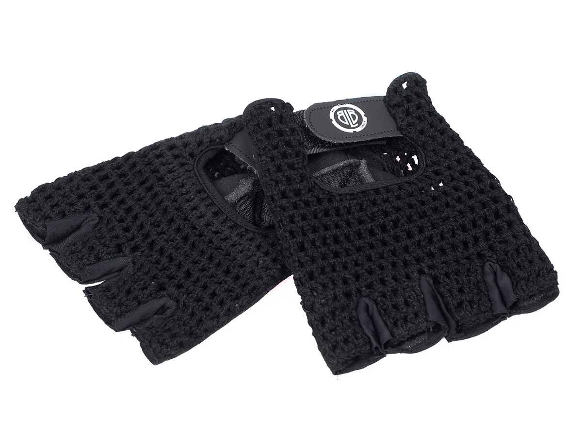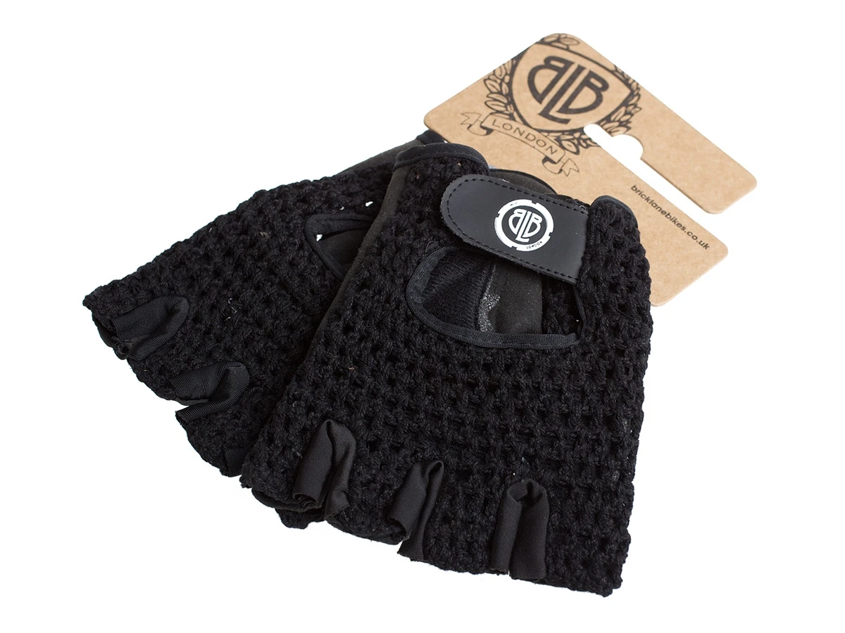 The BLB Cycling Gloves (black) have a crochet string back with cuff adjusters and a synthetic leather/suede palm with foam padding. Featuring our classic shield logo and lockring logo.