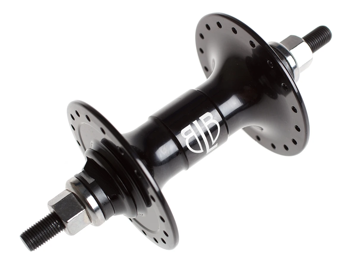 Featuring an extra strong solid axle and attractive machined locknuts, the BLB Freestyle Front Hub (black) will last and last. Perfect for fixed freestyle or just commuting around town.