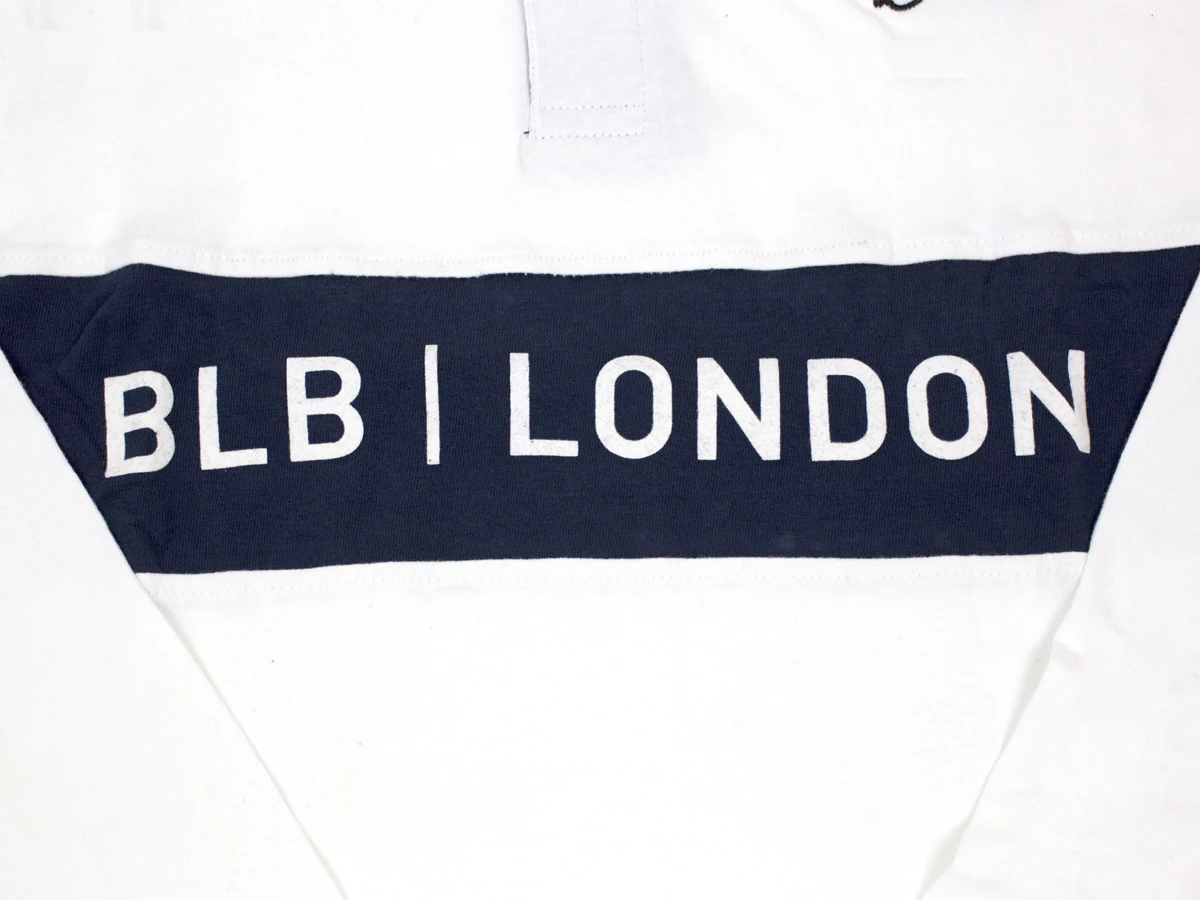 It has tonal stitch detail to the neck and sleeve seams. The front boats ‘BLB LONDON’ branding in tonal flock as well as a smaller woven brand tab to the lower right.