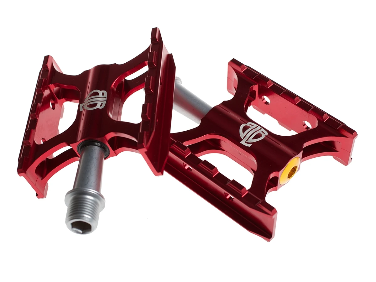 The BLB Track Pedals (red) are elegant 6061 extruded CNC machined double sided track pedals with sealed bearings that ensure smooth and durable movement.