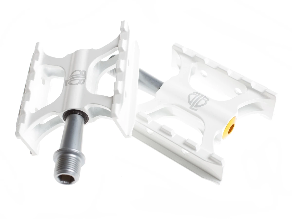 The BLB Track Pedals (white) are elegant 6061 extruded CNC machined double sided track pedals with sealed bearings that ensure smooth and durable movement.