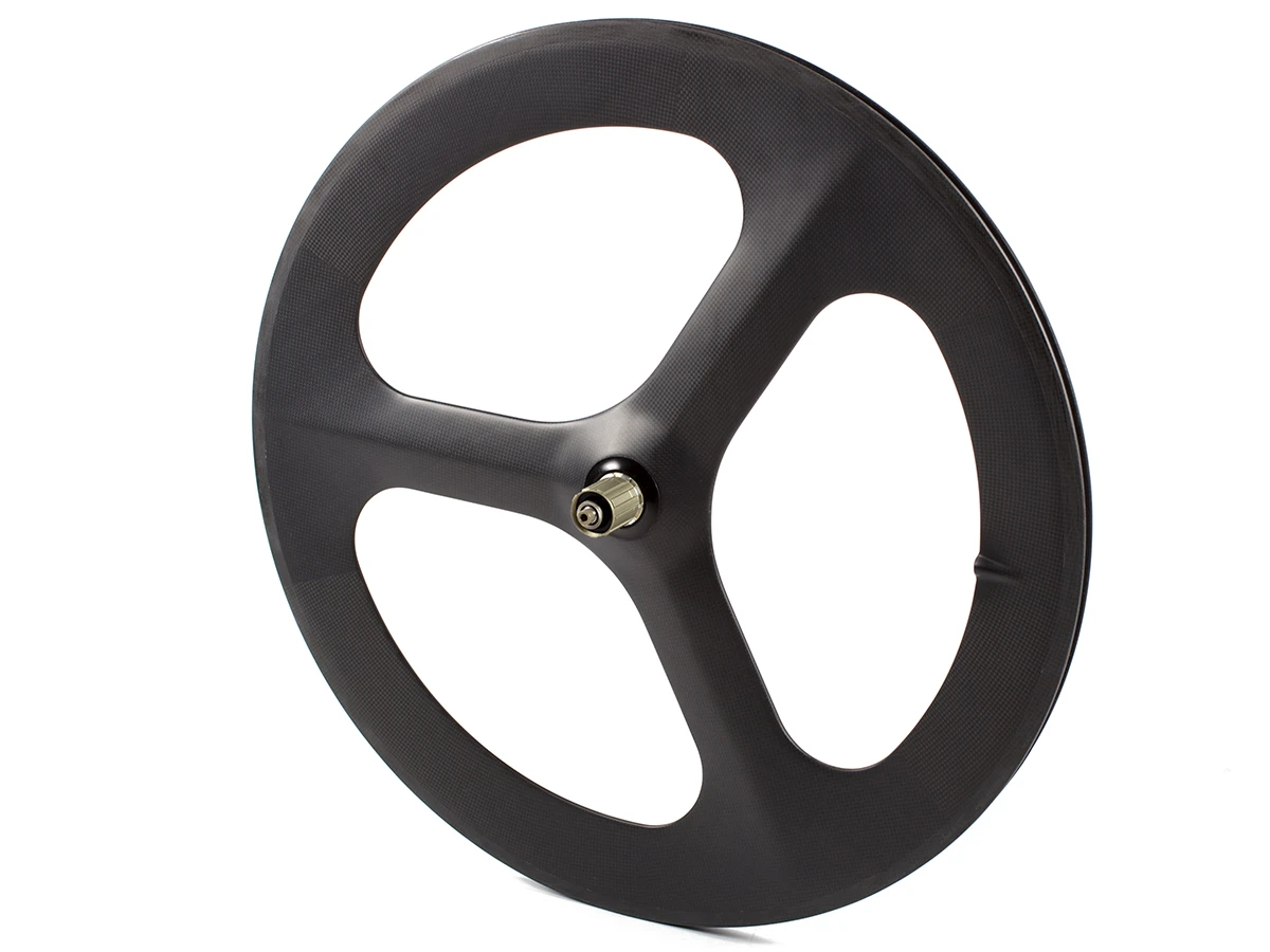 Full carbon, tri-spoke rear wheel.