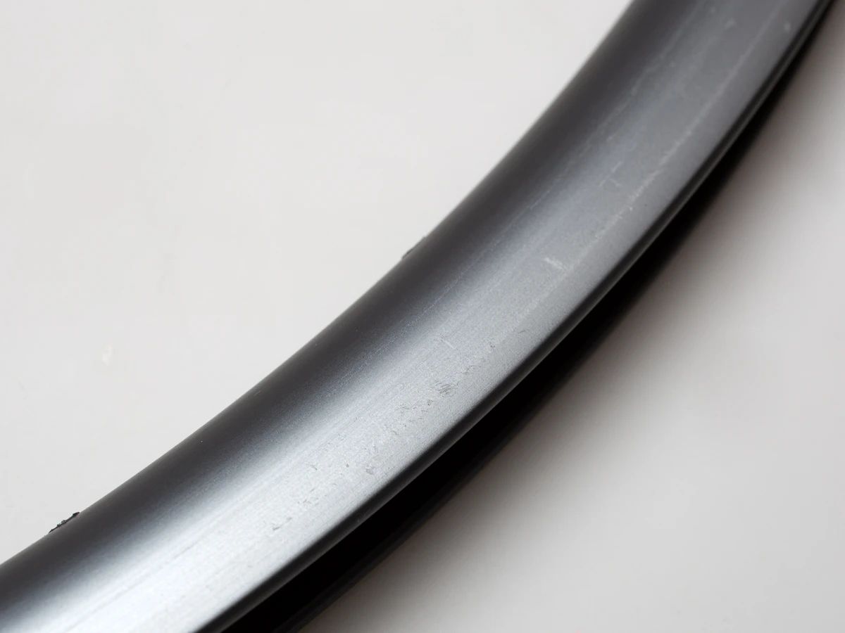 The well accepted 23mm wide profile mimics a tubular tire, where the advantage can be felt immediately while taking corners as the tire is no longer shaped as a light bulb, flopping over with high load. Impeccable H Plus Son workmanship and invisible welded rim joint comes standard with each rim.
