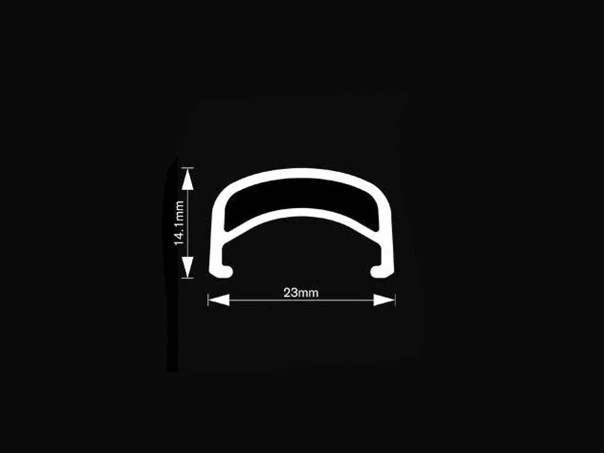 The pairing of a 23mm wide profile with a 23mm tire is fast becoming the industry standard for competitive road cycling. The wider rim adds stiffness and gives a profile that resembles a tubular tire. The advantage of this rim/tire profile can be felt immediately when taking corners as the tire is no longer shaped like a light bulb, flopping over with high loads.