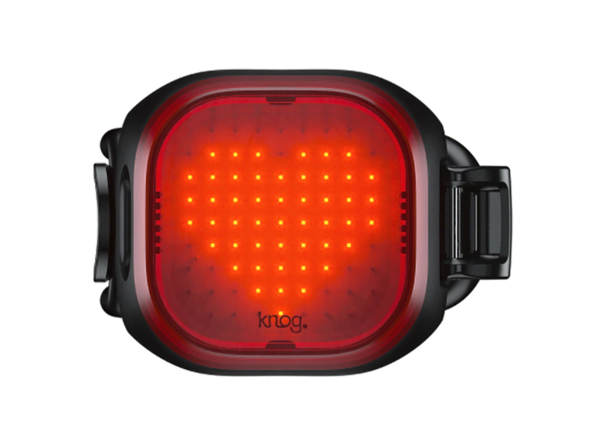 It features a heart pattern that makes this Blinder Mini one of Knog’s most individual lights ever. The graphic flash pattern has 8 different modes and is also available as a rear light to make a unique pair.