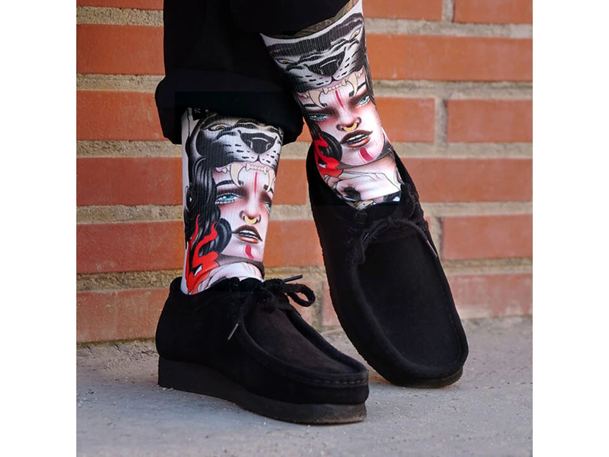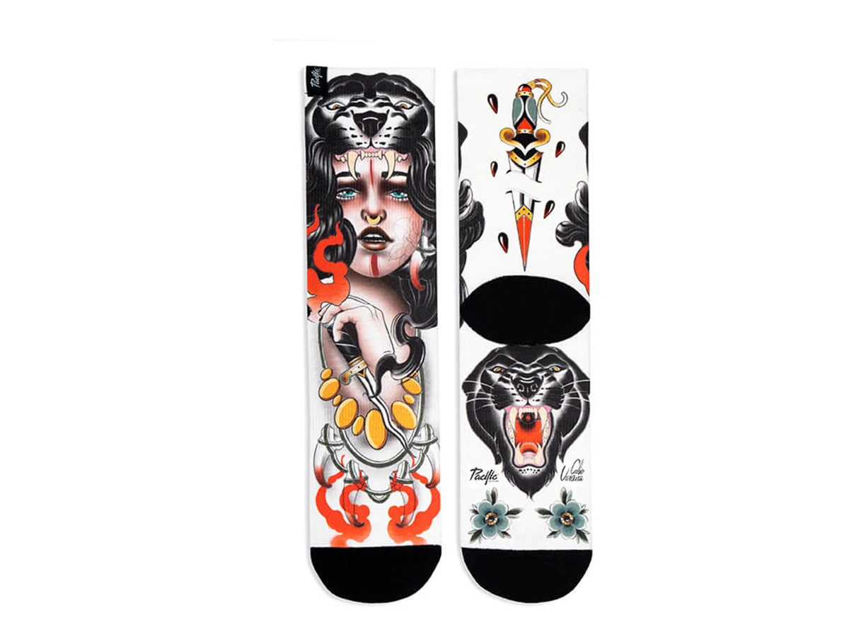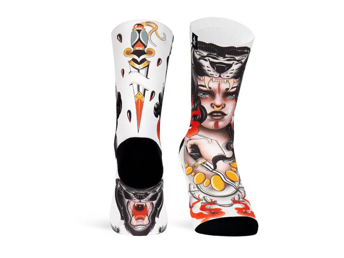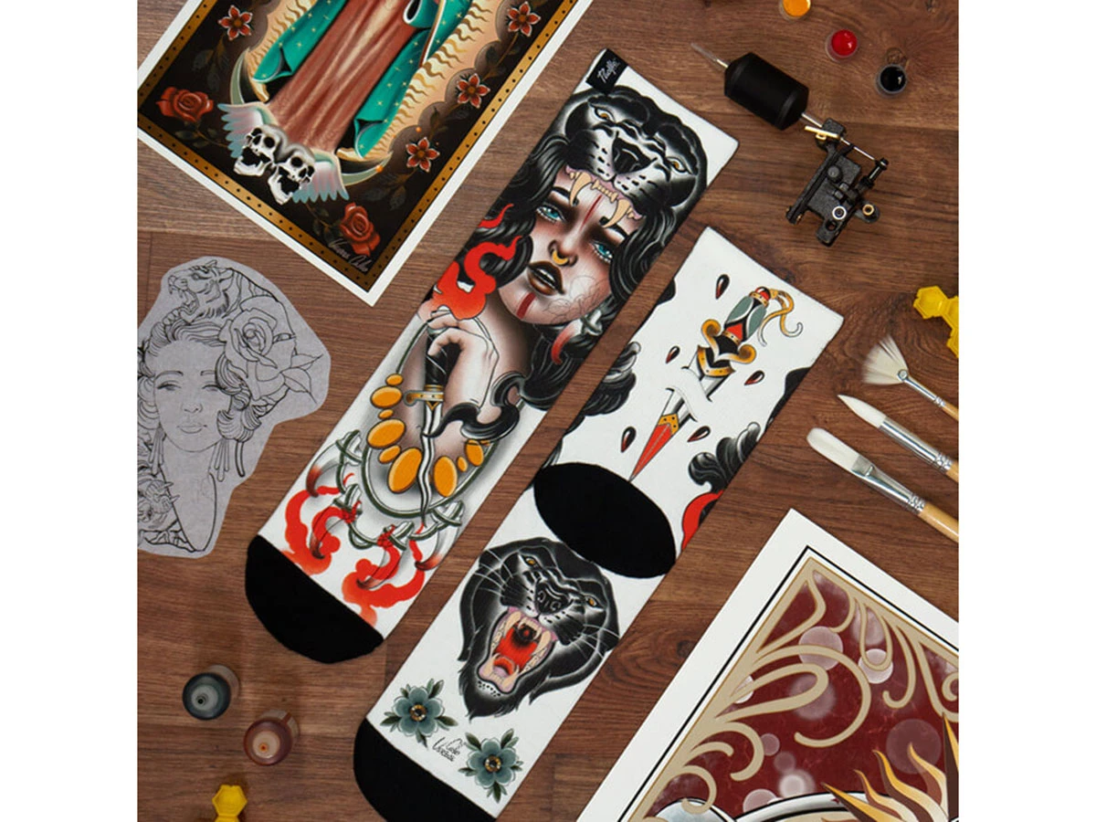 Tattoo Woman Series – Viviana Calvo, a Malaga-based tattoo artist with a neo-traditional style, is in-charge of giving life to the Amazona socks. A homage to all the woman warriors like us, claiming equality and fighting to maintain our strong identity.