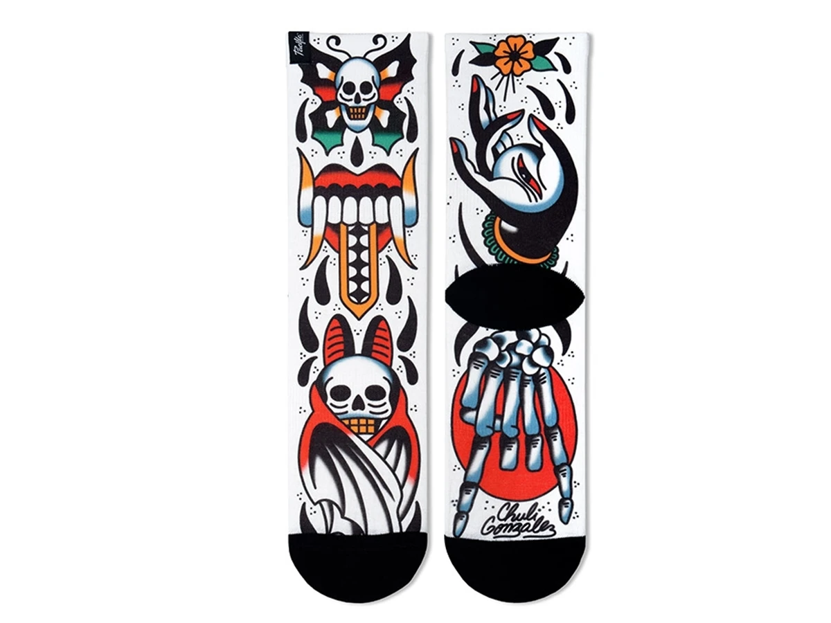 The SKULL socks are part of the capsule collection TATTOO SERIES, the new socks in collaboration with three Tattoo Artists from Barcelona. Here is Chuli Gonzalez, giving the a dark and classy touch to the collection with a clean Traditional tattoo.