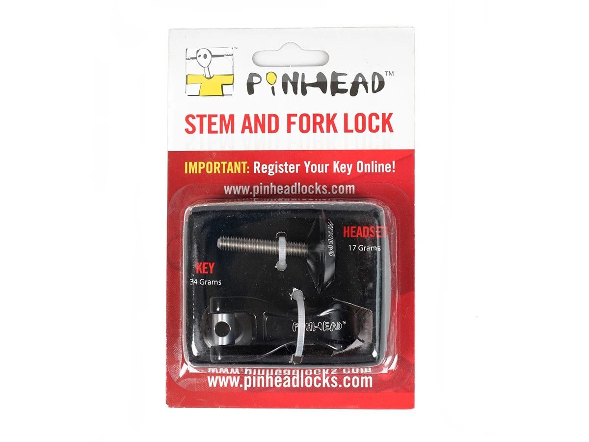 Pinhead offers you the ideal solution to fork and stem theft with their headset lock. This includes the headset locking system, which secures your very expensive forks and stem assembly.