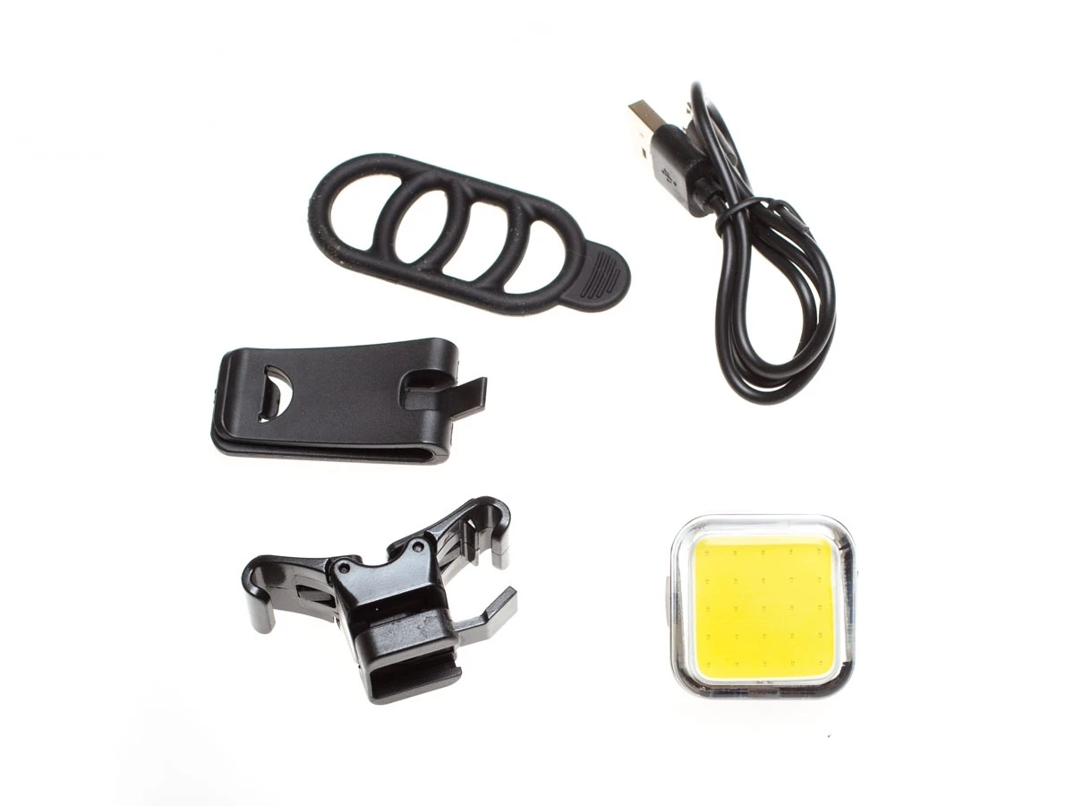 It’s fully charged by a mini USB cable within 90minutes which provides up to 6 hours of lamp time when using the flash mode. It comes with seatpost and clip on (helmet or bag) fittings and a charging cable.